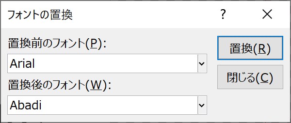 [フォントの置換]をクリックすると、下のようなウィンドウが表示されます。